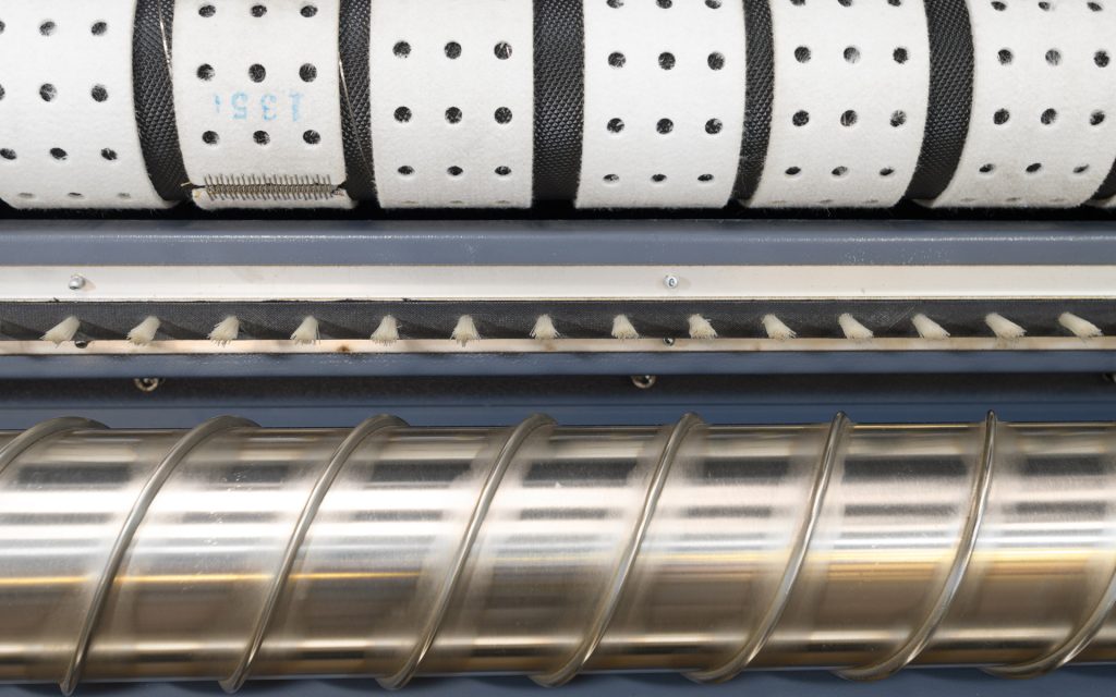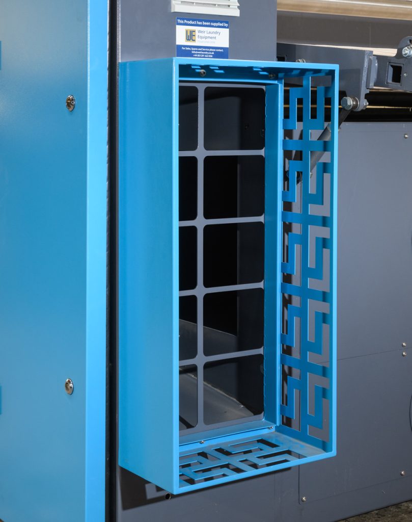 The clipping stations also retract for small piece feeding such as pillow cases, napkins and table linen. The Monofeed is able to process a range of items of varying dimensions and weights.